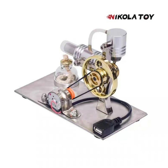 Ten model silnika Stirlinga wyposażony jest w lampkę LED na USB, która świeci podczas pracy silnika. Dzięki temu można natychmiast zobaczyć efekt wytwarzania energii, a cały zestaw zyskuje atrakcyjny, edukacyjny charakter.
