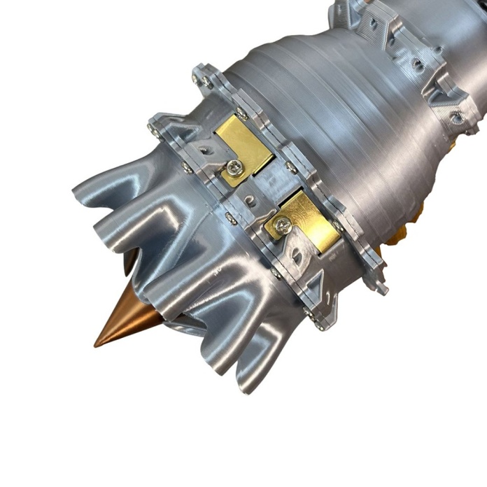 Model silnika ma wymiary 21 x 12 x 10 cm oraz waży zaledwie 230g, dzięki czemu jest niewielki, stabilny i łatwy w ustawieniu na biurku, półce lub stanowisku pokazowym. Idealny do prezentacji, nauki i eksperymentów edukacyjnych.